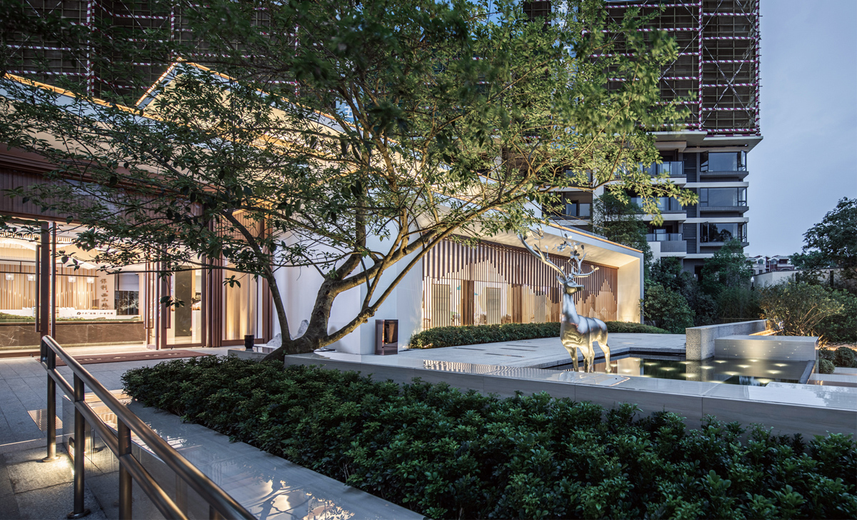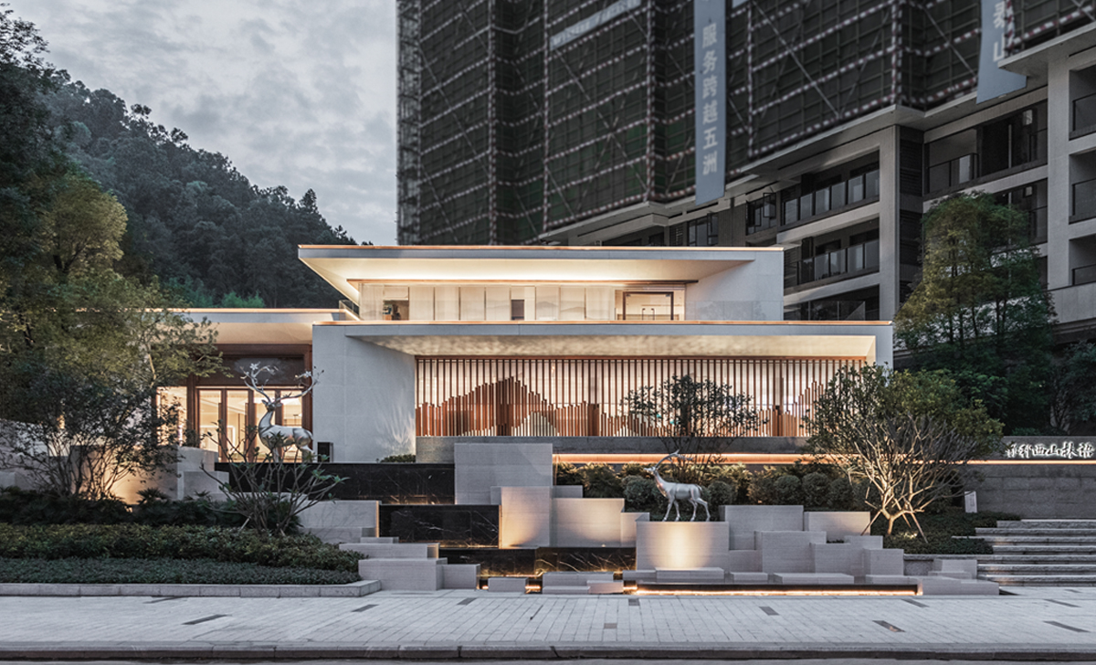 西山林語項(xiàng)目采用“現(xiàn)代中式”來闡述歸家禮序,找尋極致之美,回溯東方美學(xué)本真。整個(gè)展示區(qū)“坐山觀水”體現(xiàn)詩意棲居的本質(zhì)和內(nèi)涵。貫穿“山、水、林、語”的元素,營造高山流水的極致生活品質(zhì),打造庭院深深的詩意住區(qū)環(huán)境。景觀以高山流水、深深庭院、山體公園、生活架空層為設(shè)計(jì)亮點(diǎn),打造層層遞進(jìn)的歸家禮序。